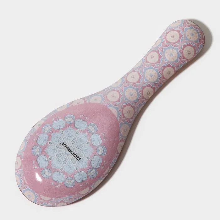 Подставка под ложку — практичный кухонный аксессуар. Походит для грязных ножей, половников, лопаточек и других предметов. Поддерживает порядок в рабочей зоне. Изделие располагают рядом с плитой и кладут на неё ложку или лопатку, которыми помешивают или переворачивают блюда. Подставка под ложку, помимо основного назначения, служит оригинальным украшением кухни. Это изделие можно подобрать под определённый дизайн интерьера. Подставку можно повесить на стену в качестве декора или расположить на полке рядом с посудой, гармонирующей по цветовой гамме.