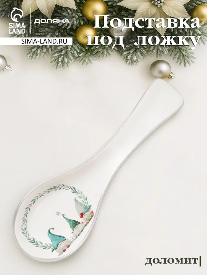 Подставка под ложку новогодняя Доляна «Домашние гномики», 22.3×7.1×2.5 см, доломит, белая — Характеристики