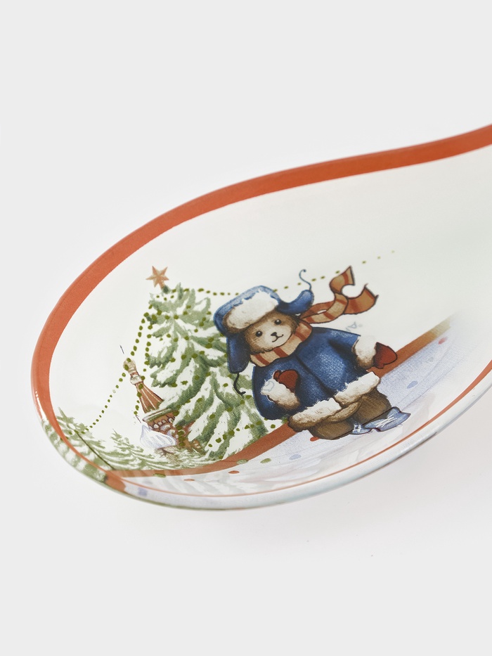 Подставка под ложку новогодняя Доляна «Московский мишка», 24.5×10×2.1 см, стекло, белая — Характеристики