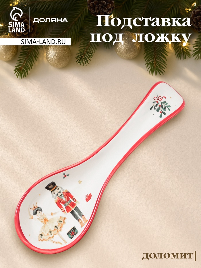 Подставка под ложку новогодняя Доляна «Сказки зимнего леса», 22.3×7.1×2.7 см, доломит, белая — Характеристики