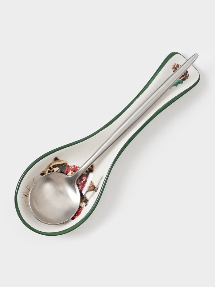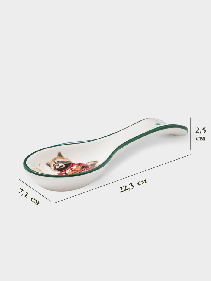 Праздничная ложечная подставка станет очаровательным акцентом на вашей кухне этой зимой. Она идеально подчёркнет волшебство новогоднего застолья. Уникальный принт с изображением сказочных животных придаёт посуде дополнительный шарм и вызывает детские воспоминания о зимнем лесу. Элегантная и практичная, она сохраняет чистоту и порядок, освобождая пространство для кулинарных шедевров.