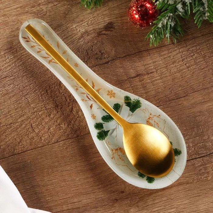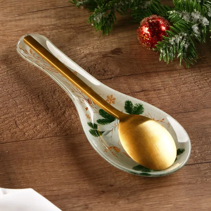 Новогодняя стеклянная подставка под ложку размером 21,4 х 7,5 см — отличный выбор для вашей кухни.