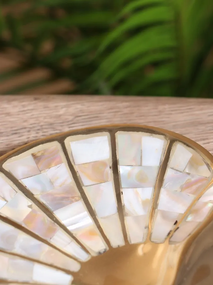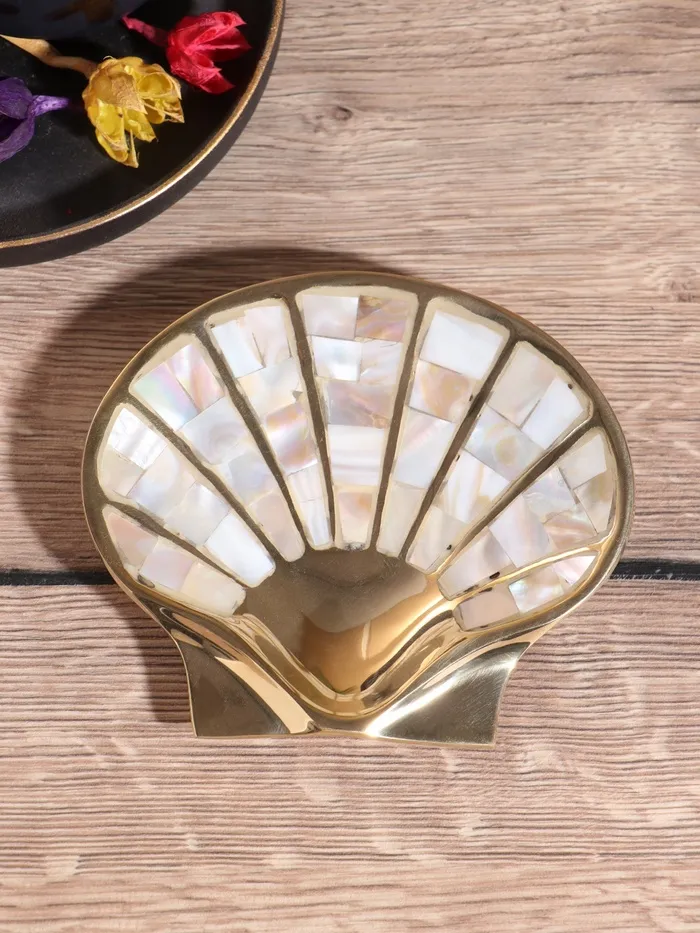 Подставка под мелочи «Морская», 13×11.5×2 см, латунь с перламутром