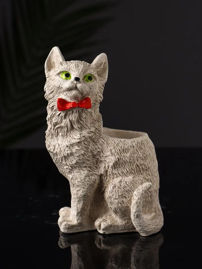 Подставка для мелочей «Кот с бантом», гипс, 14×9×7 см, бежевый
