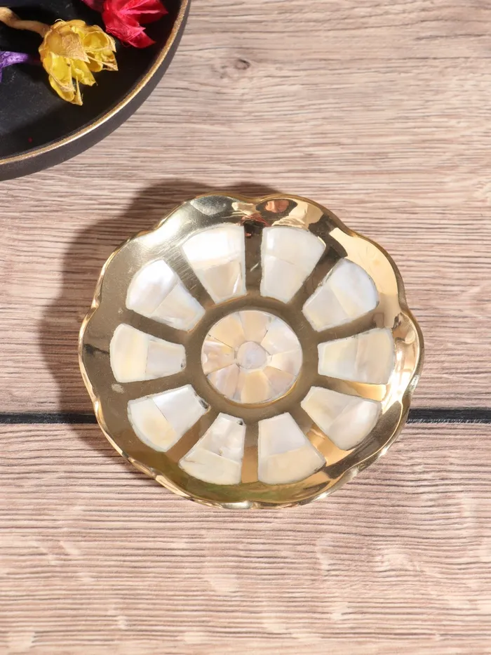 Подставка под мелочи «Цветок», 10×10×1.5 см, латунь с перламутром