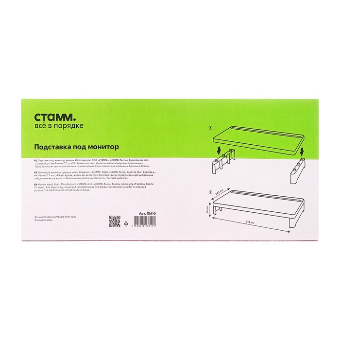 Подставка под монитор, Стамм, 51×24×7.4 см, офисная, чёрная — Характеристики