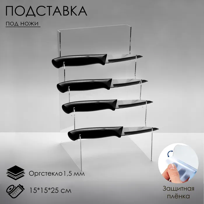Подставка под ножи 15×15×25 см, оргстекло 1.5 мм, В ЗАЩИТНОЙ ПЛЁНКЕ — Характеристики