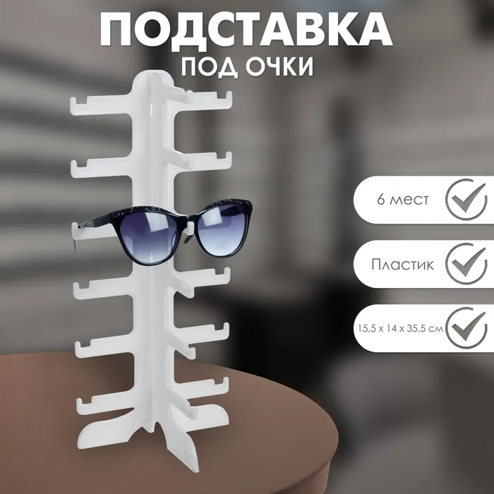 Подставка под очки 6 мест, 16×14,5×35,5 см, цвет белый — Характеристики