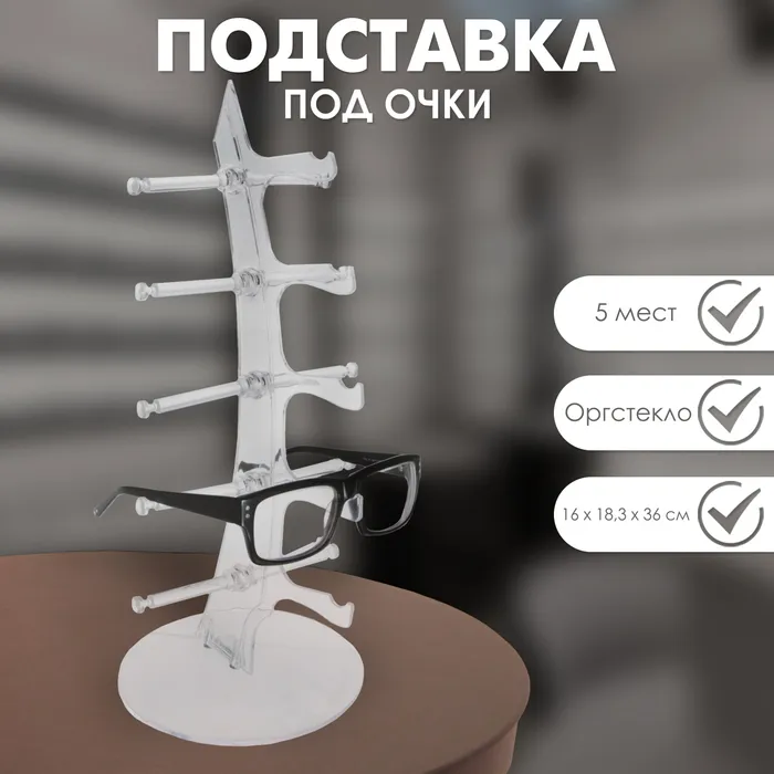 Подставка под очки 5 мест, 16×18,3×36 см, цвет прозрачный