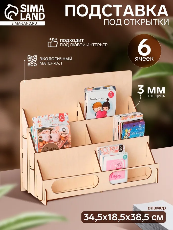 Подставка под открытки 6 ячеек по 16,2 см, 34,5×18,5×38,5 см, толщина 3 мм, цвет бежевый — Характеристики