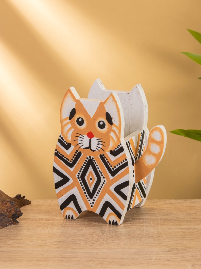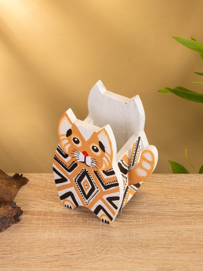 Подставка под ручки "Котик" албезия 12х8х15 см