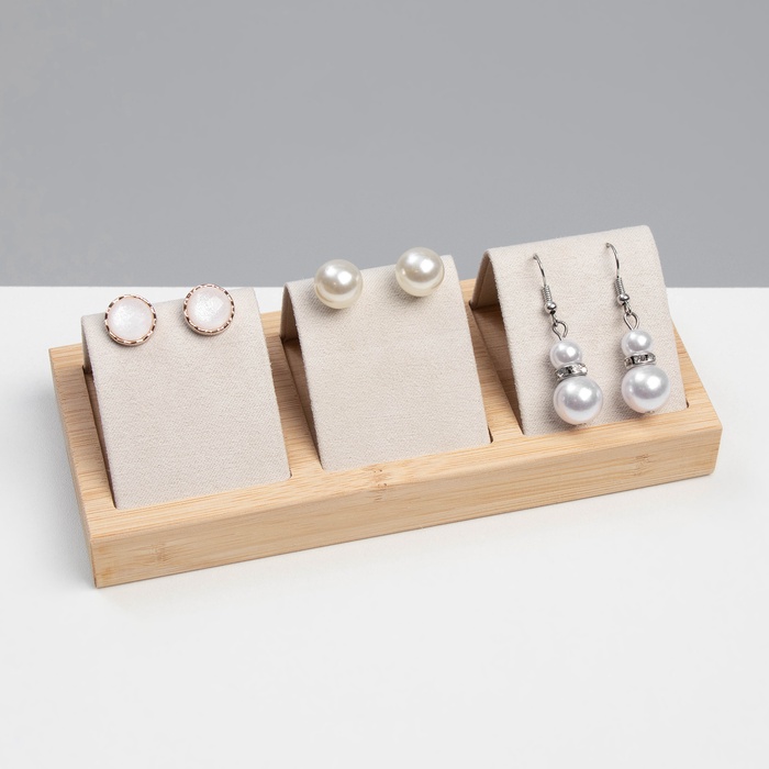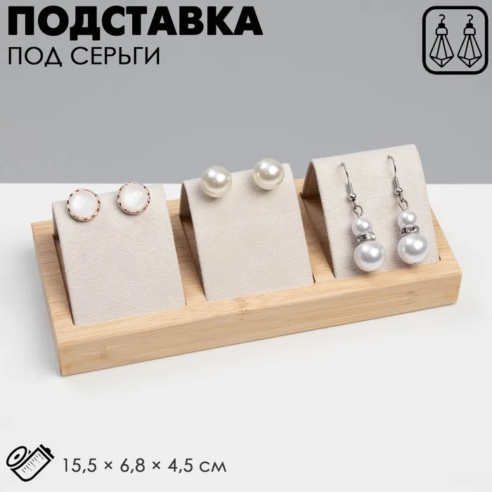 Подставка под серьги QF, дерево, 3 пары, 15,5×6,8×4,5 см, цвет бежевый — Характеристики