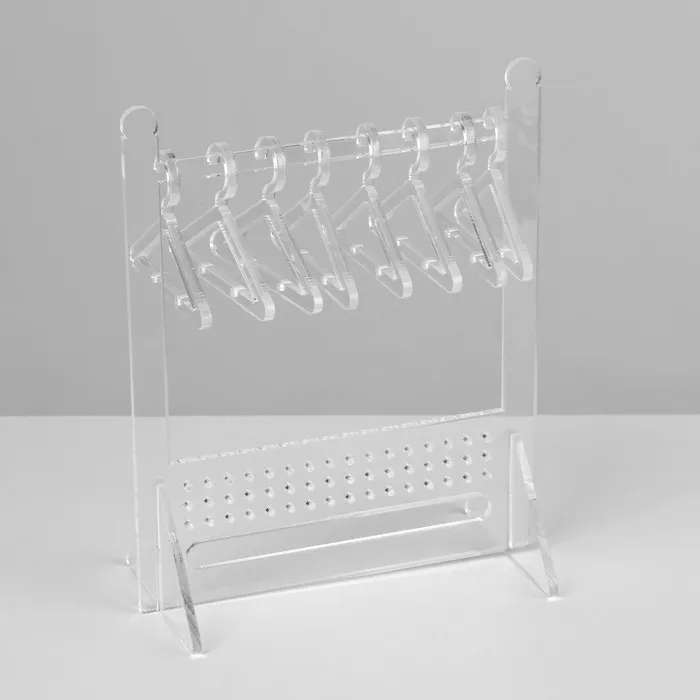 Прозрачный цвет подставки придаёт ей современный и минималистичный вид, который органично впишется в любой интерьер. Это решение идеально подходит для хранения серёг в спальне, гардеробной или на туалетном столике, а также для использования в магазинах или мастерских для демонстрации украшений.