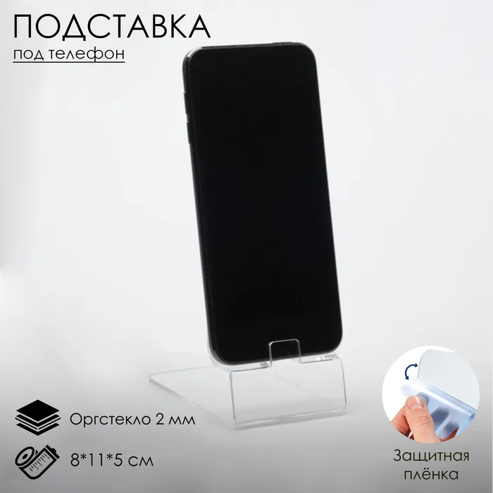 Эта компактная подставка для телефона с размерами 8×11×5 см выполнена из прозрачного оргстекла, что придаёт ей стильный и современный вид. Отлично подходит для использования на столах и в офисах для удобного хранения мобильных устройств. Подставки из оргстекла (листовой акрила). Благодаря использованию 100% акрила, подставки имеют идеальную прозрачность, высочайший блеск и шикарный внешний вид. ВНИМАНИЕ: Изделия поставляются в матовой защитной плёнке, белого, синего, зелёного или прозрачного цвета, которую необходимо удалить перед оценкой качества или перед использованием.