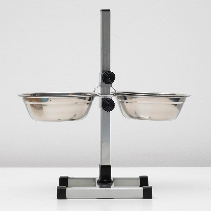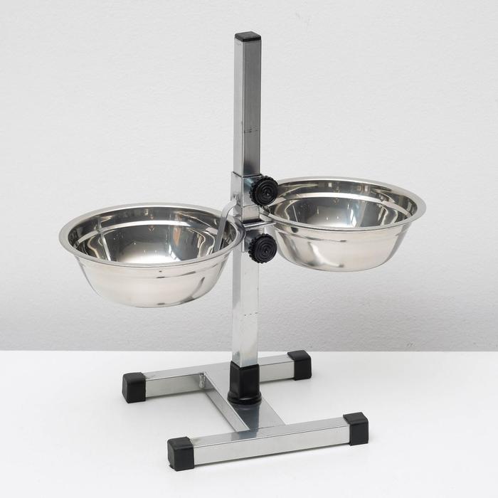 Стойка с 2-мя мисками для кормления сразу нескольких животных, это – идеальное решение для кормления щенков и собак подростков, живущих на одной территории. Качественные, практичные и функциональные миски для собак размещены на регулируемой подставке, которая будет "расти" вместе с вашими малышами. Винтовая кормушка убережёт помещение от загрязнения кормом и водой. Металлическая конструкция очень устойчивая, поэтому ее очень сложно сдвинуть или опрокинуть даже самым активным щенкам. Стойка и миски хорошо переносят обработку горячей водой, моющими и дезинфицирующими средствами.