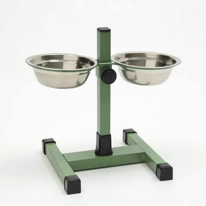Стойка с 2-мя мисками для кормления сразу нескольких животных, это – идеальное решение для кормления щенков и собак подростков, живущих на одной территории.