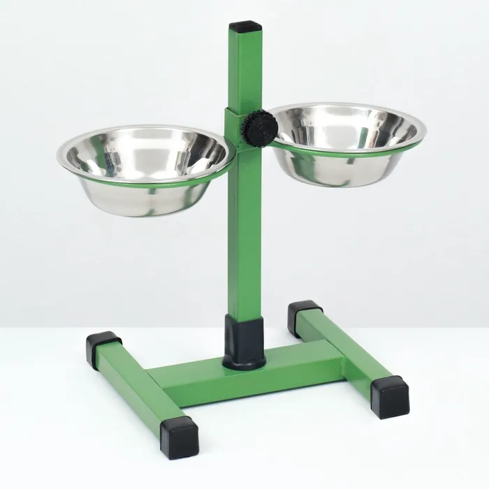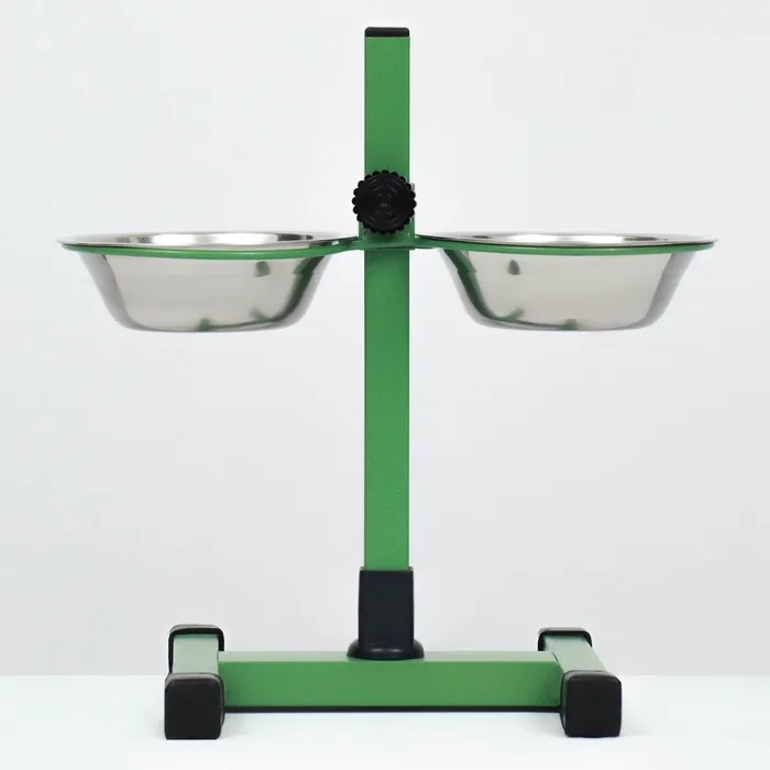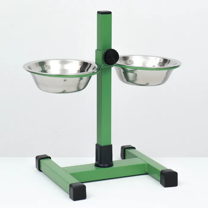Стойка с 2-мя мисками для кормления сразу нескольких животных, это – идеальное решение для кормления щенков и собак подростков, живущих на одной территории.