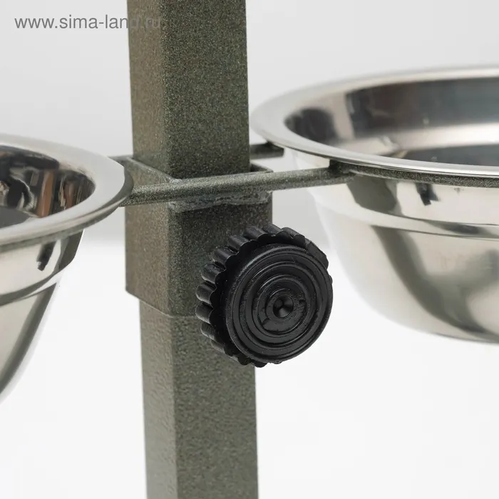 Стойка и миски хорошо переносят обработку горячей водой, моющими и дезинфицирующими средствами.