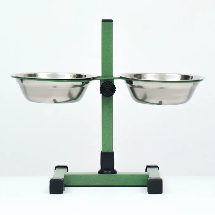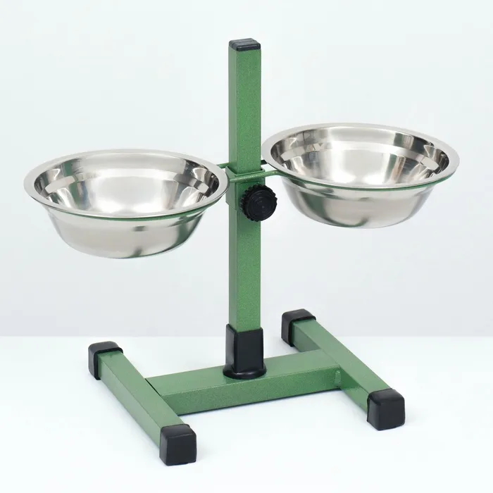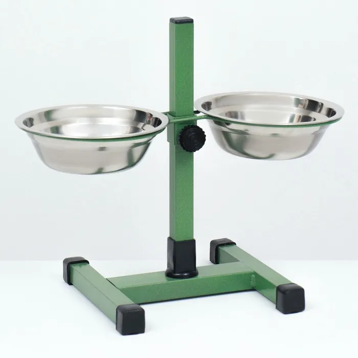 Стойка с 2-мя мисками для кормления сразу нескольких животных, это – идеальное решение для кормления щенков и собак подростков, живущих на одной территории.