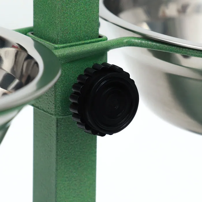 Стойка и миски хорошо переносят обработку горячей водой, моющими и дезинфицирующими средствами.