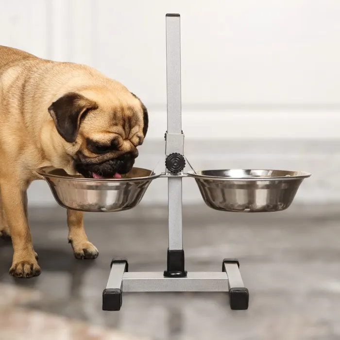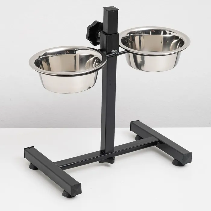 Подставка с мисками, 2 х 700 мл, высота 40 см, разборная с верхним фиксатором, хром