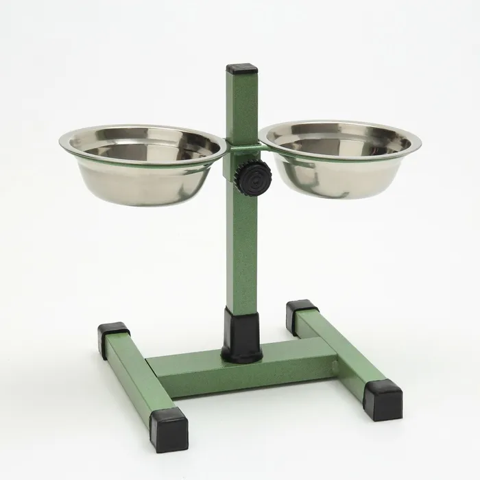 Подставка с мисками, 2 х 700 мл, высота 40 см, разборная, зелёная