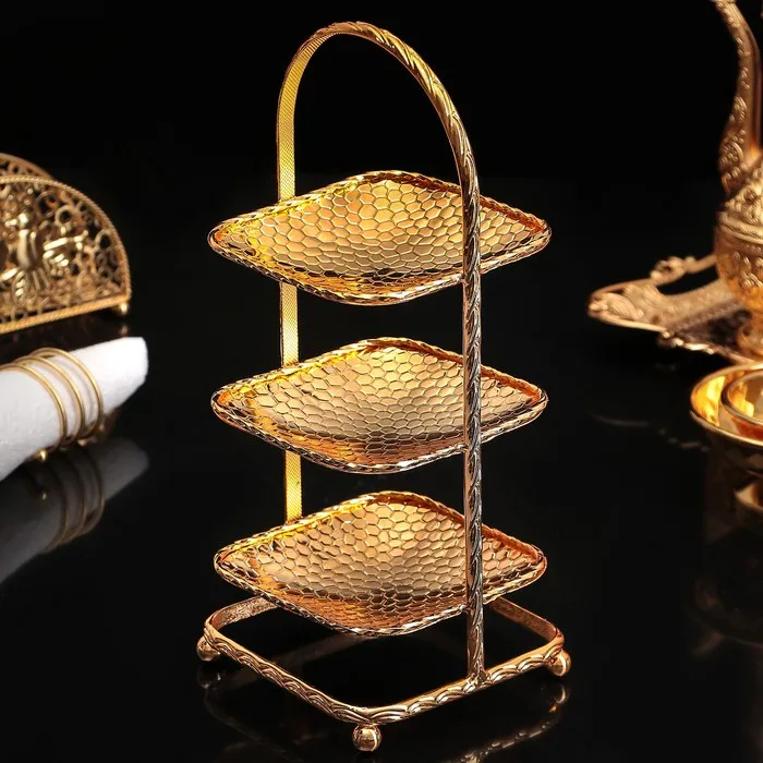 Подставка сервировочная «Валерия», 11×12×28 см , 3 яруса, цельная, цвет золотой — Характеристики