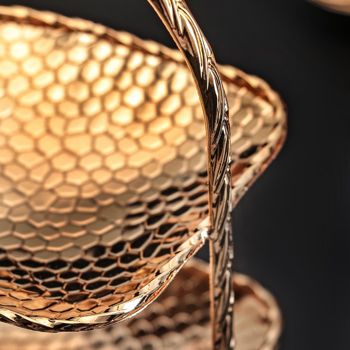 Подставка для десертов позволит эффектно подать сладости и закуски к праздничному столу. Подставка выполнена из металла «под золото».