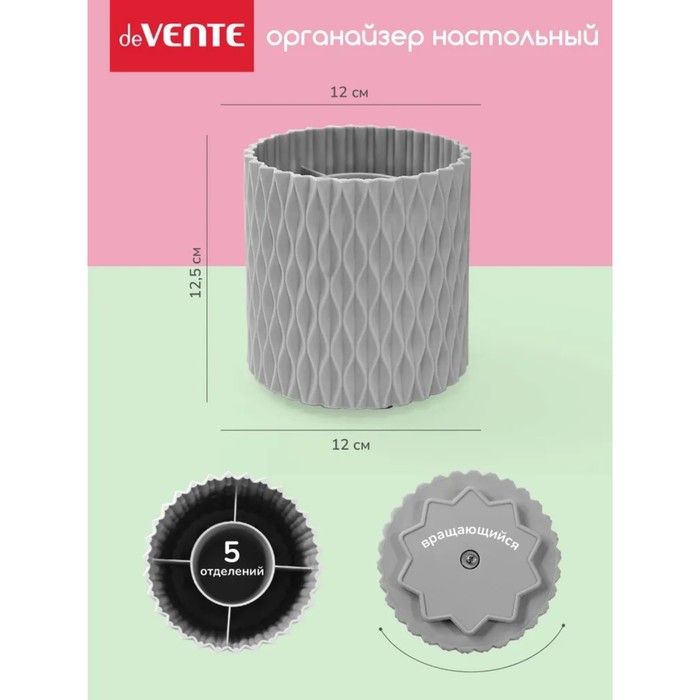 Подставка-стакан для канцелярии deVENTE Eclectic пластик, вращающаяся серая — Характеристики