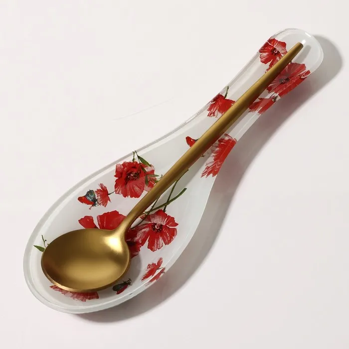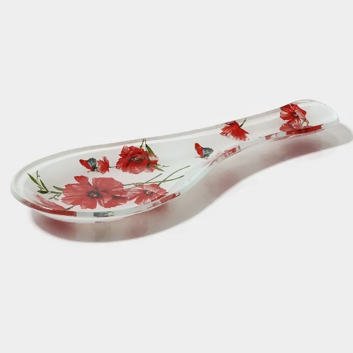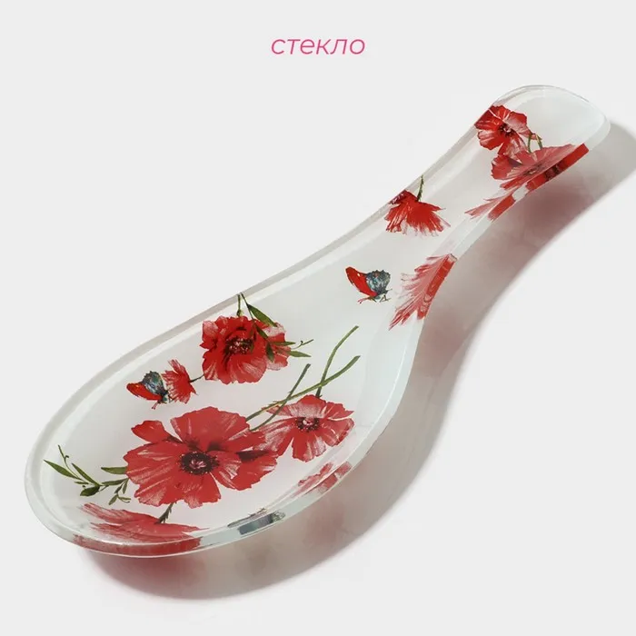 Подставка стеклянная под ложку Доляна «Красные маки», 23,5×8,3×1,5 см — Характеристики