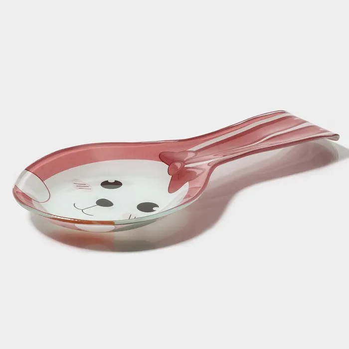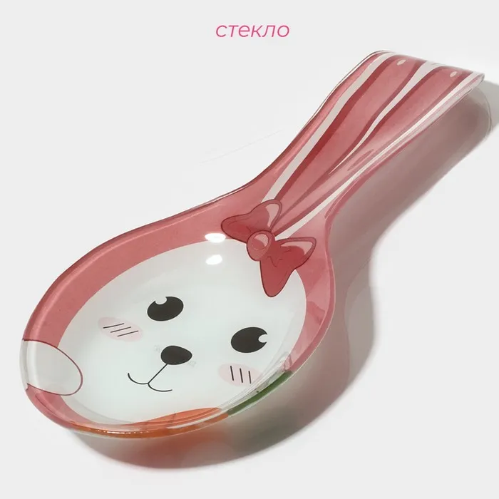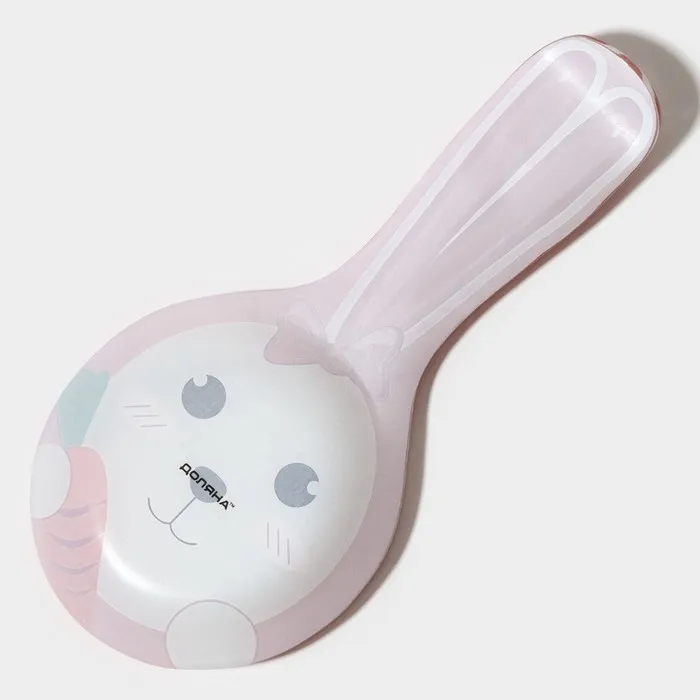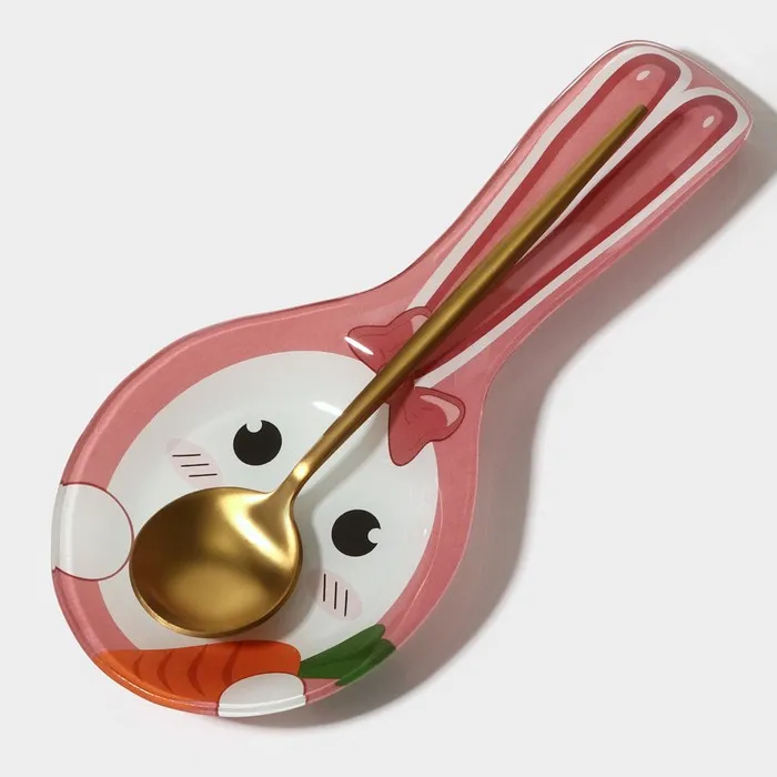 Подставка стеклянная под ложку Доляна «Зайка и морковка», цвет розовый — Характеристики