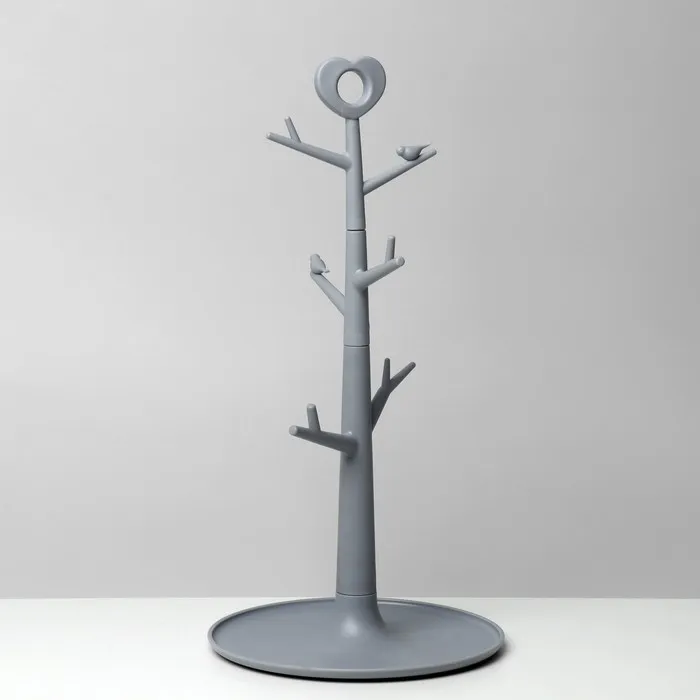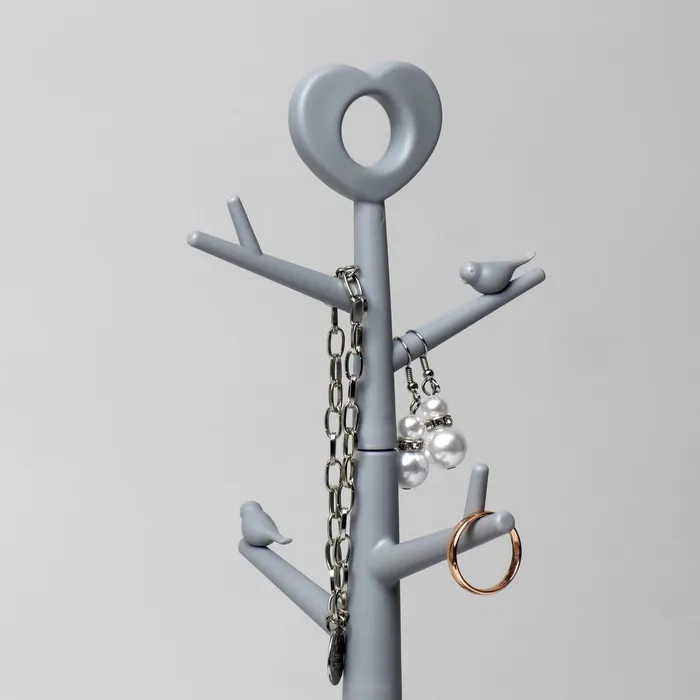 Универсальная подставка в форме дерева из серого пластика — стильное и практичное решение для хранения украшений. Благодаря продуманной конструкции и лаконичному дизайну она легко впишется в интерьер любой комнаты, добавляя организованности и уюта.