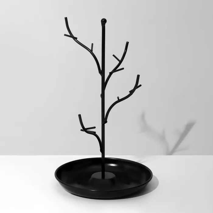 Чёрная подставка в форме дерева на устойчивой подставке — это сочетание лаконичности и функциональности, которое преобразит хранение ваших украшений. Металлическая конструкция с матовым покрытием создаёт строгий и современный образ, идеально вписываясь в интерьер любого стиля — от минимализма до хай-тек.