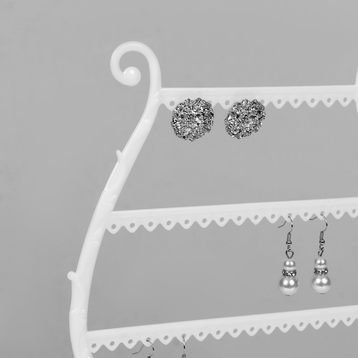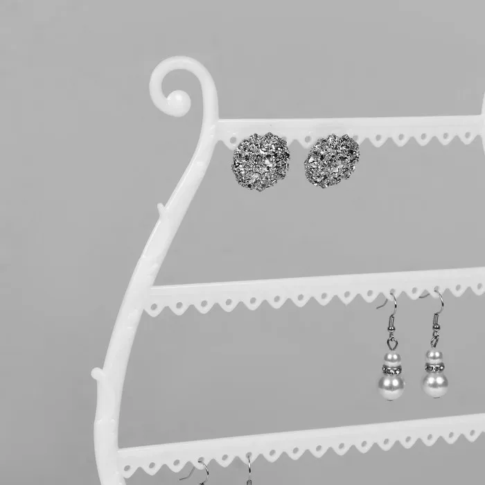 Изготовленная из прочного белого пластика, подставка сочетает в себе практичность и эстетическую привлекательность. Её форма «арфа» не только обеспечивает стабильность, но и подчёркивает изящность расположенных на ней украшений, делая подставку не просто функциональным элементом, а стильным дополнением интерьера.