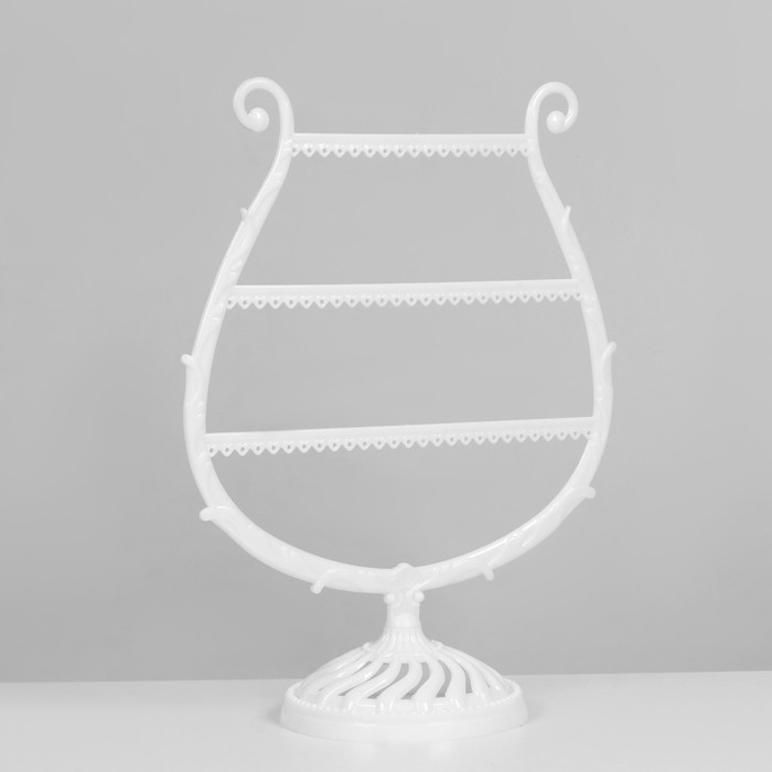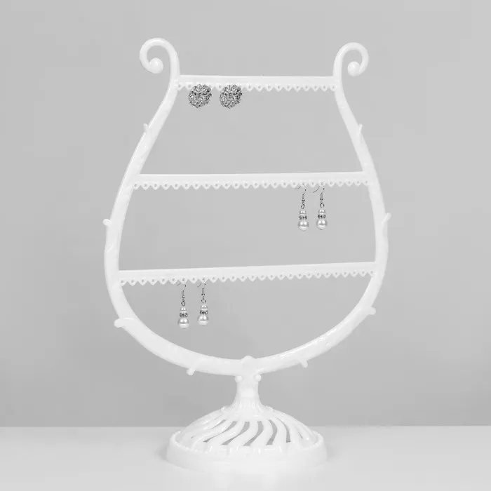 - Элегантный дизайн: форма арфы и белый цвет создают стильный акцент, подчёркивающий изысканность украшений.