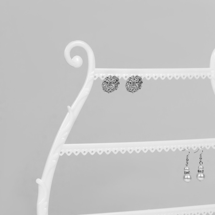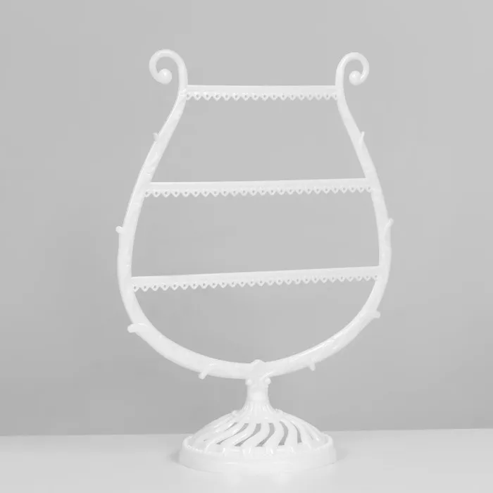 Изготовленная из прочного пластика, подставка отличается легкостью и долговечностью. Её лаконичный белый цвет придаёт изделию свежий и современный вид, который гармонично впишется в любой интерьер, подчёркивая красоту и изящество ваших украшений.