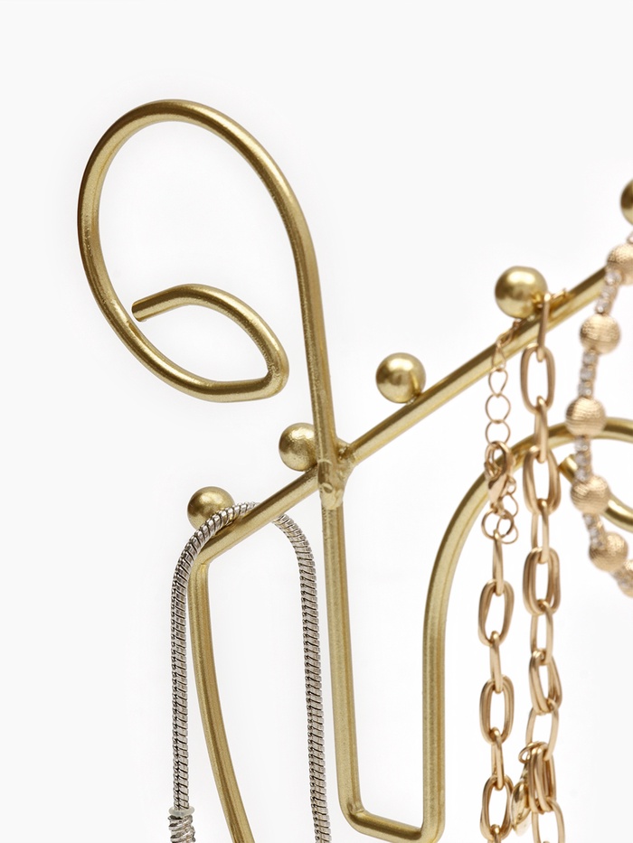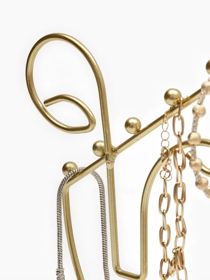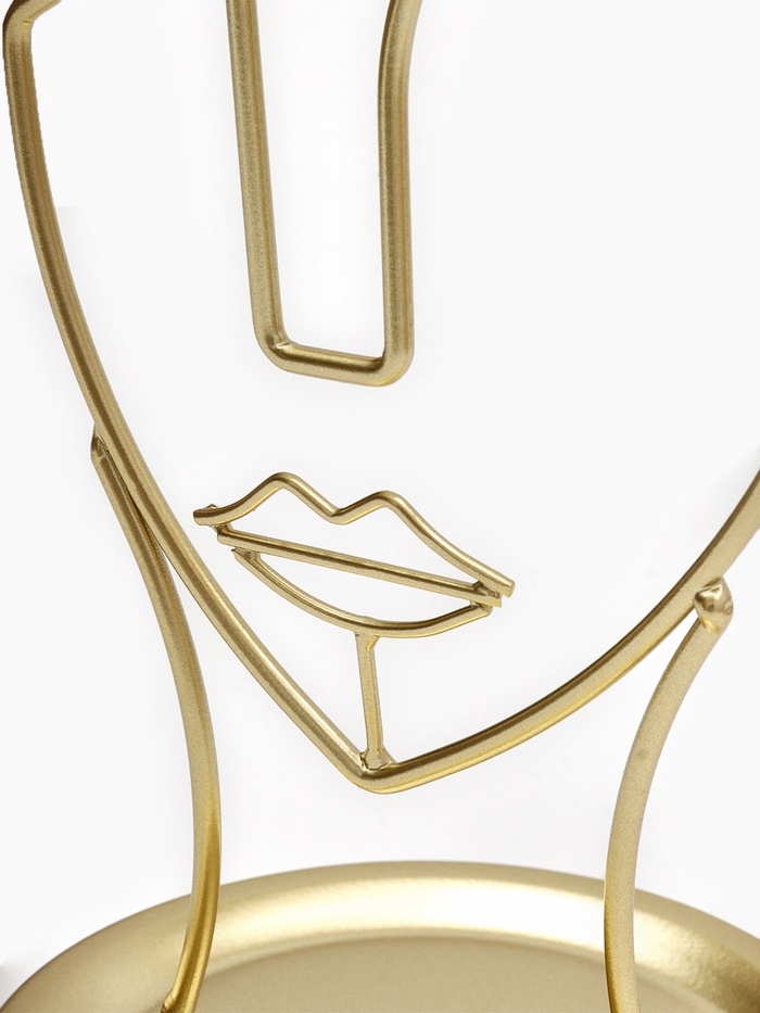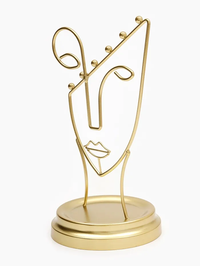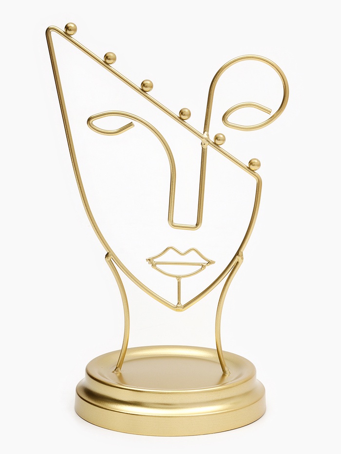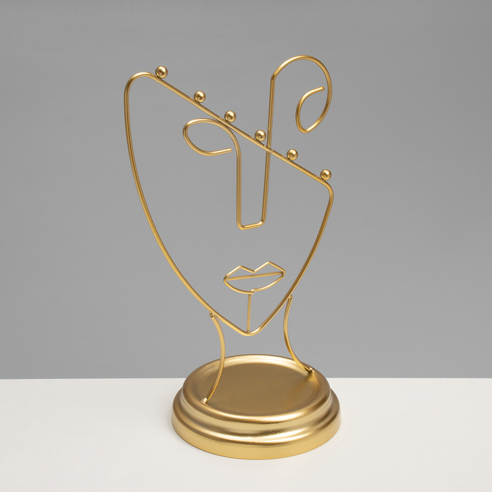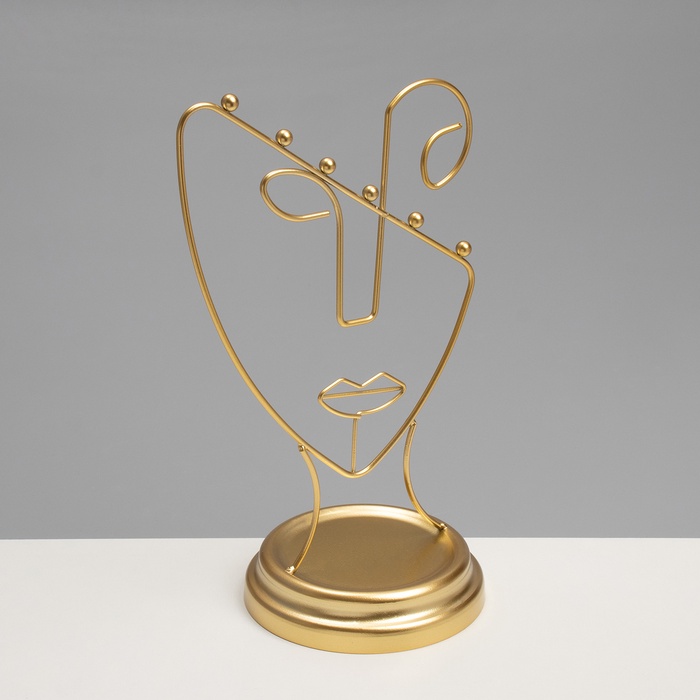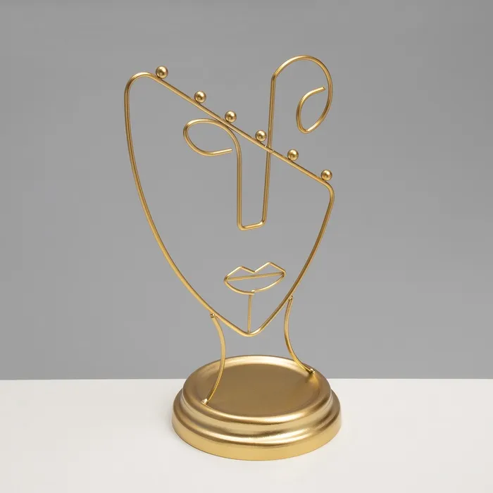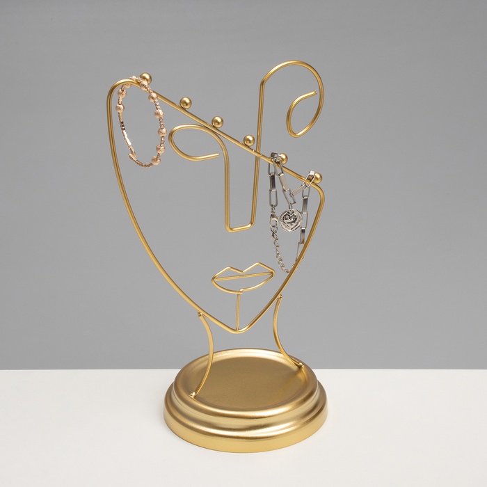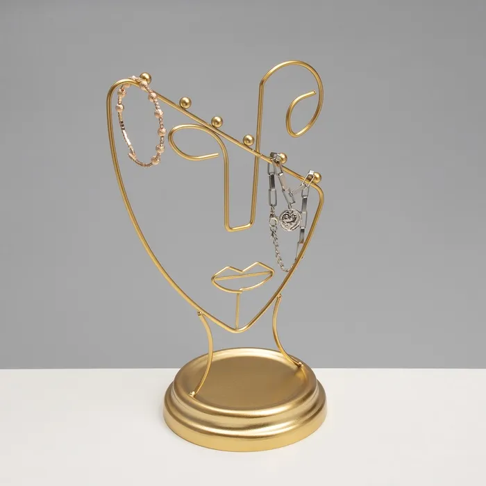 Золотистая подставка в форме пол-лица — это стильное и функциональное решение для хранения украшений, которое гармонично впишется в любой интерьер. Высота 26 см и компактная длина 13 см обеспечивают удобство размещения на столе или полке, а уникальный дизайн в виде силуэта человека добавляет художественную выразительность и индивидуальность.