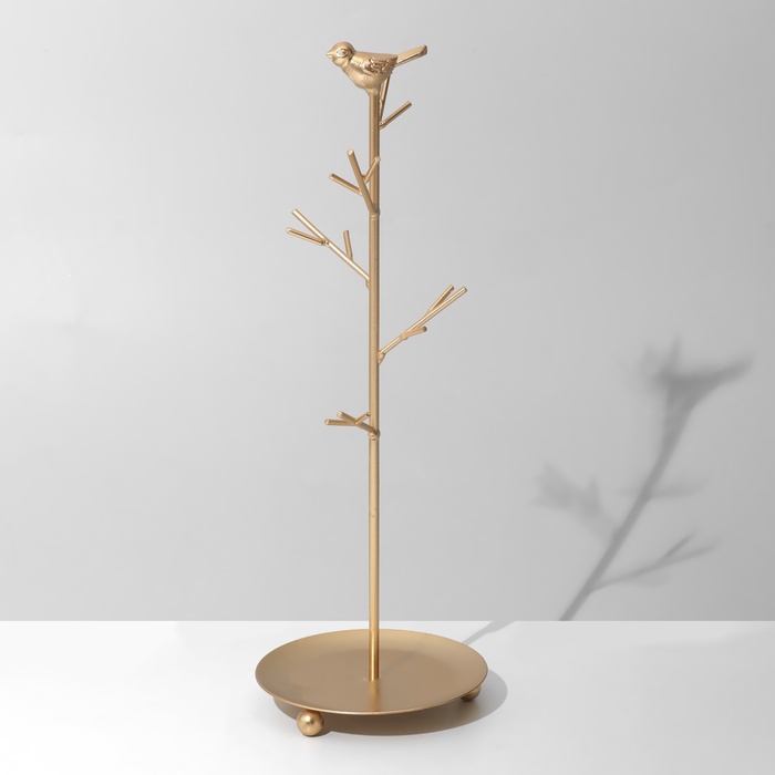 Изящная подставка в форме дерева с птицей на ветке станет не только функциональным аксессуаром для хранения украшений, но и стильным декоративным элементом интерьера. Золотистое металлическое покрытие придаёт изделию благородный и тёплый оттенок, который легко впишется в любой дизайн комнаты, создавая атмосферу уюта и изящества.