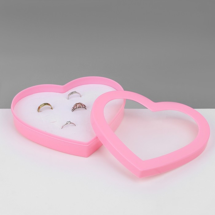 Подставки для украшений с крышкой «Дорожная сердце» 36 мест, пластик, 14×15.5×2 см, розовая