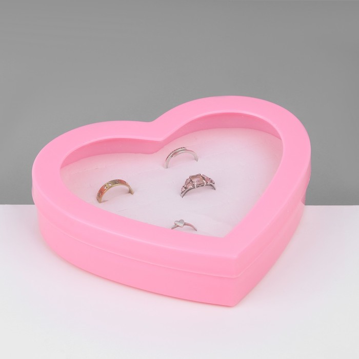 Подставки для украшений с крышкой «Дорожная сердце» 36 мест, пластик, 14×15.5×2 см, розовая — Характеристики