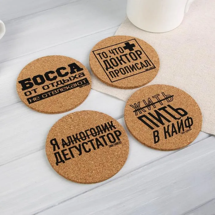 Подставки под стакан «Пить в кайф», 4 шт., d=9 см — Характеристики