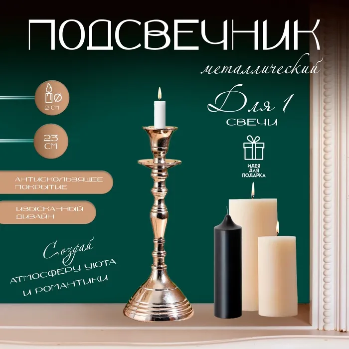 Подсвечник алюминий "Вулкан" на 1 свечу 6,5х6,5х11 см — Характеристики