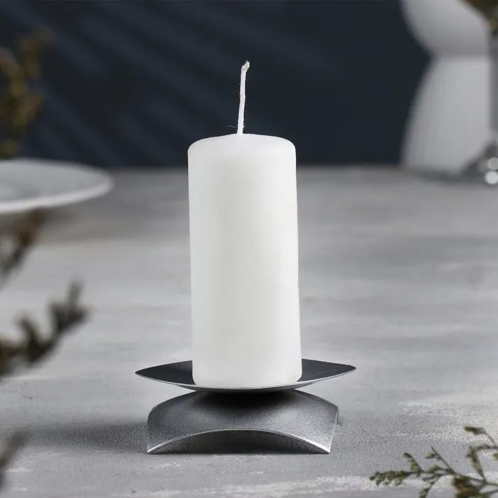 Подсвечник "Кварта Н" металл на одну свечу, 9,5х3 см, серебро