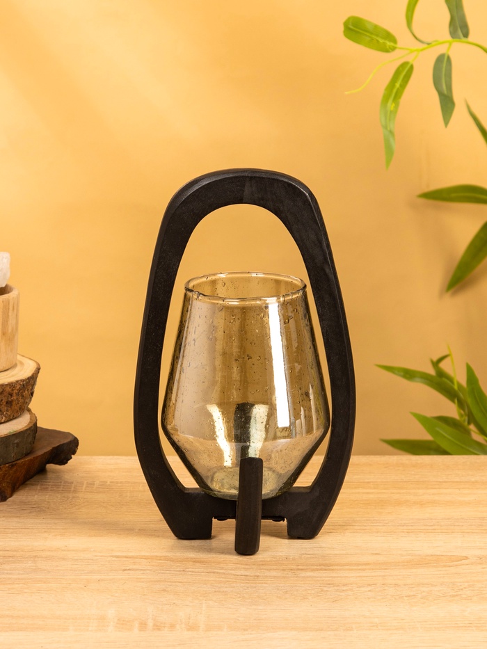 Подсвечник «Аура», 13×15×26 см, стекло, дерево — Характеристики