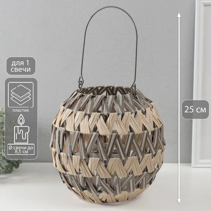Подсвечник-фонарь на 1 свечу «Зигзаг полосками», пластик, серо-бежевый, 13×27×25 см