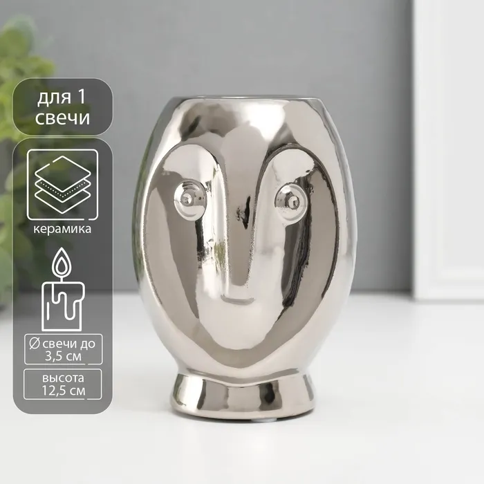 Подсвечник керамика на 1 свечу «Сова Сипуха», d=3.5 см, серебро, 9×8.5×12.5 см