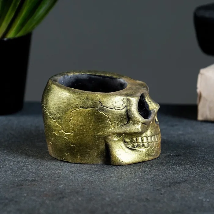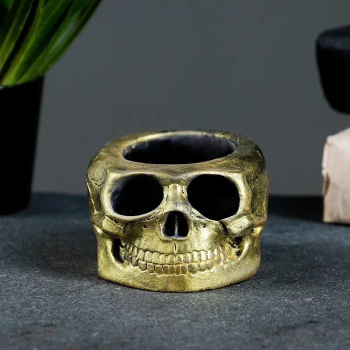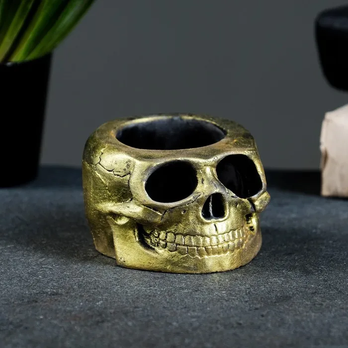 Подсвечник "Череп муэрто" состаренное золото, 8х7х5см — Характеристики