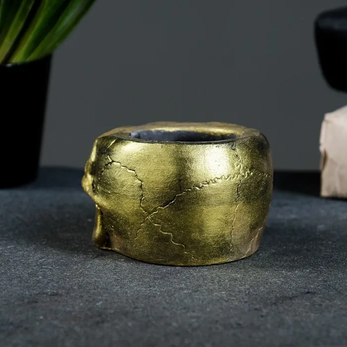 Подсвечник "Череп муэрто" состаренное золото, 8х7х5см