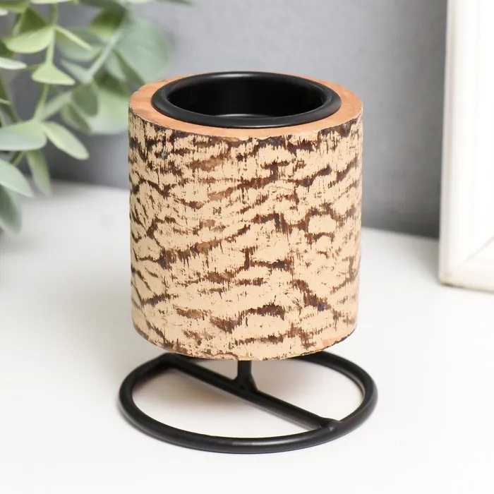 Подсвечник дерево, металл на 1 свечу "Столбик" 8х7х7 см, МИКС — Характеристики