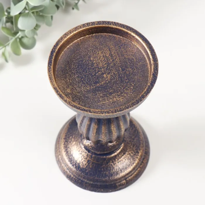 Подсвечник дерево на 1 свечу d=9 см "Фердинанд" синий с патиной 10,5х10,5х17 см — Характеристики
